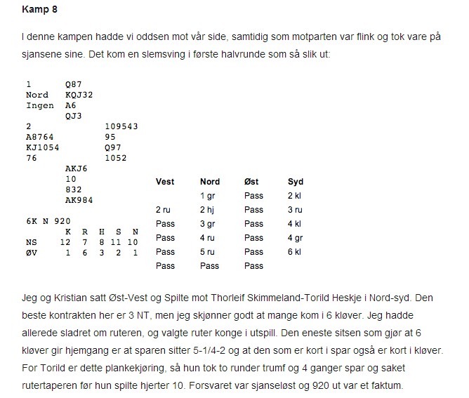 I helga sa "alle" at 6kl er beit med ruter ut. Tohild Heskje motbeviser at det stemte og det var med kun halvparten av kortene synlig. Kanskje det aller beste spillet jeg har hørt om og takk til Kristoffer Hegge for at jeg får stjele fra hans side