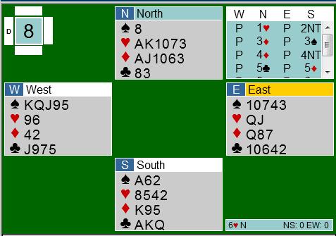 Nå vet vi det. I dag spiller han 48th Asia Pacific Bridge Federation championship for Malaysia mot New Zealand og på spillet under kom de i 3NT etter at makkeren åpnet i en kløver som ble alertert og Dick svarte 1 hjerter som sikkert viste 4 spar, hvorpå han løftet makkers 2 hjerter til 3 kløver og makkeren avsluttet med 3NT.