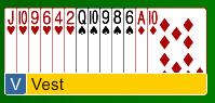 På spørsmål får du vite at 5 ruter er fargemelding. Du har følgende hand: