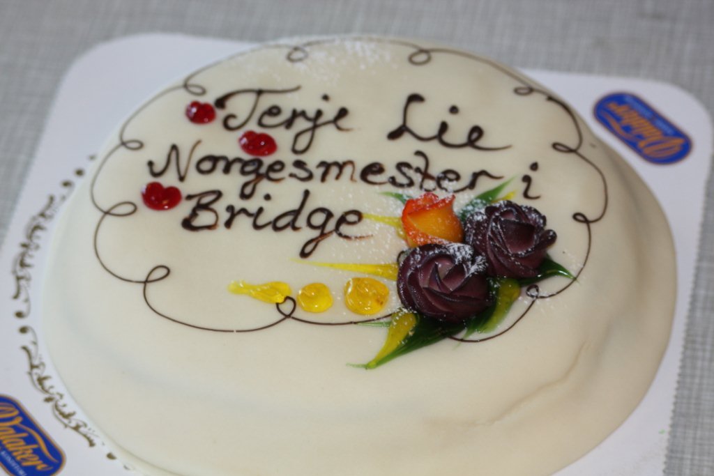 På bildet under kan dere se den flotte innskripsjonen på kaka.