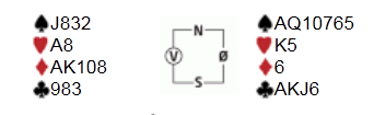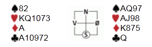 Du får kortene øst-vest, og skal sette deg i øst sin stol med liten ruter ut fra sør, kontrakten er 6 spar: