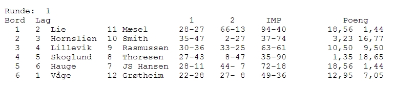 Det har blitt mest fra toppdivisjonen i SM, men det er ingen grunn til å tro at det som foregår i andredivisjon er så mye dårligere. Brødrene Kopstad er vel strengt tatt minst like gode som hvilket som helst norsk par du sier navnet på, så det skulle bare mangle. Paret jobber utrolig planmessig med systemet sitt og Kjell Otto fortalte at han hadde brukt to hele dager før forrige helg til å pugge system. "Alt er så mye letter når du slipper å tenke på å huske, men kan konsentrere deg om å bruke.."