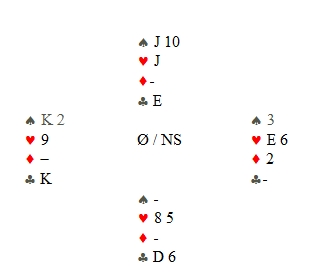 Denne gangen har jeg på en måte mer forståelse for protesten siden vest trodde kløveren var i nord og ikke i syd, men for hans vurdering når han meldte 4hj kan jeg ikke skjønne at det skal bety noe avgjørende . Om to av nord sine spar byttes til kløver og to av syd sine kløver bytter til spar, ville meldingene kunne gått akkurat likedan. Nord har Kxx, xx, Exx, Dxxxx og syd har xx, KJx, DJxxx, KJx. Det ville fremdeles være beit(er) i 4hj.