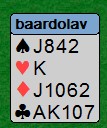 I KM klarte Kolbotn BK1 å slå Askim 14,11 - 5,89. I A- pulja leder Fredrikstad klart, og de 9 andre lagene kjemper om medalje og unngå nedrykk. Av spesielt dårlige spill var det en håpløs meldt 4 hjerter fra Lars Erik, samt en meget dårlig 6 hjerter fra Niels Christian og Kolbjørn. Begge lagene medte en 7 spar som står med sparen 3-2, men desverre satt den 4-1 og med J bak A K D.