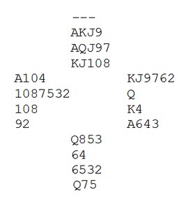Imidlertid spilte han kløver og 750 var et faktum uavhengig hva doktor gjorde, da det ville vært gratis å dekke kløver 10 med kongen.