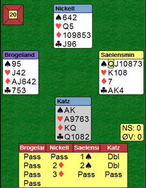 Helge startet med kløver og da var det 300 fine inn på ØV. 4sp kan vel vinnes selv med kløverstjelinga, men to dobla beit var alle poengene. |