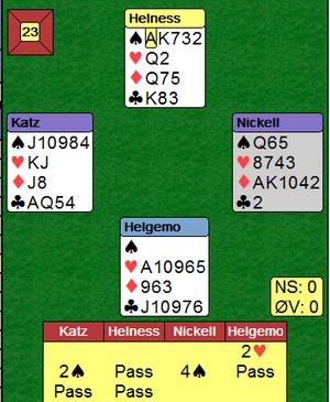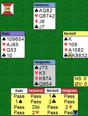 Stillingen etter 48 spill er 106 – 89 (imp) Lederlaget er Åse (Åse-Geir-Ranja-Lise). På det andre laget spiller: Gunn – Ida – Siv – Sølvi