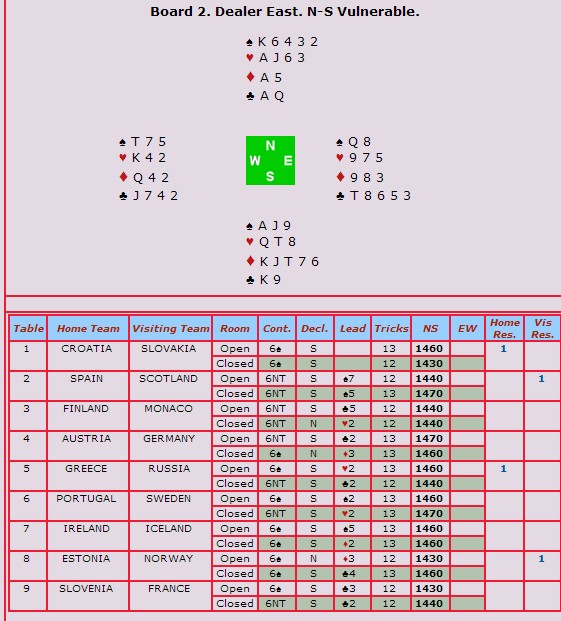 I åpent rom startet Øst med 1 spar, og Ellingsen i Syd hoppet inn med 3 kløver. Der døde det, og 100 ut for to bet så ikke bra ut. Det var fullt mulig for Ø-V å komme for høyt i hjerter. Men det skulle vise seg at frykten var ubegrunnet. Også ved det andre bordet åpnet Bakke med 1 spar, og Syd meldte 3 kløver. Nå doblet imidlertid Hegge negativt, og Bakke tok ut i 3 NT med pass rundt.