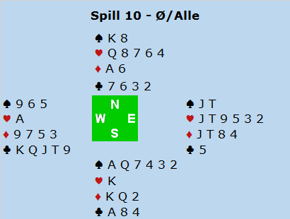 På dette spillet var begge bord flinke og unngikk 4 spar: