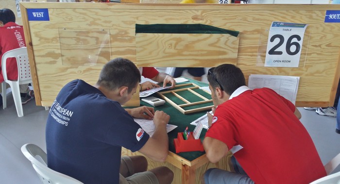 Helge og jeg møtte Anders Morath og Sven-Åke Bjerregård, to spillere som i mange år har spilt på den åpne svenske landslaget. Anders Morath har vunnet gull i EM tidligere, og to brosjemedaljer fra VM. To rutinerte spillere mao som sjelden gjør mange feil.
