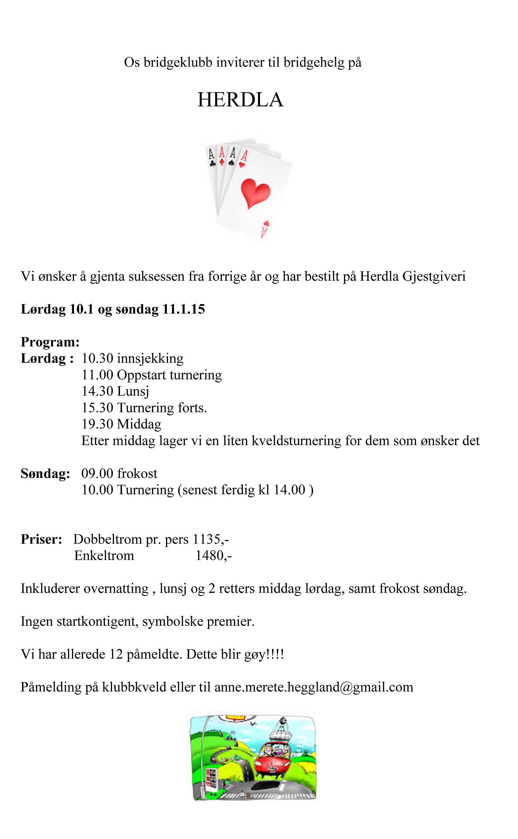 De fleste vet det sikkert allerede, men i år er det "bare" 52 par på startstreken. Tre spill i runden og 153 totalt. De fleste parene er kvalifisert gjennom kretsene, men det er også en del som har kommet med gjennom sterke resultater i andre nasjonale turneringer. Det spilles til klokka 20.15 i dag og i morgen, mens på søndagen er turneringa ferdig kl. 14. Premieutdelingen er rett etterpå.