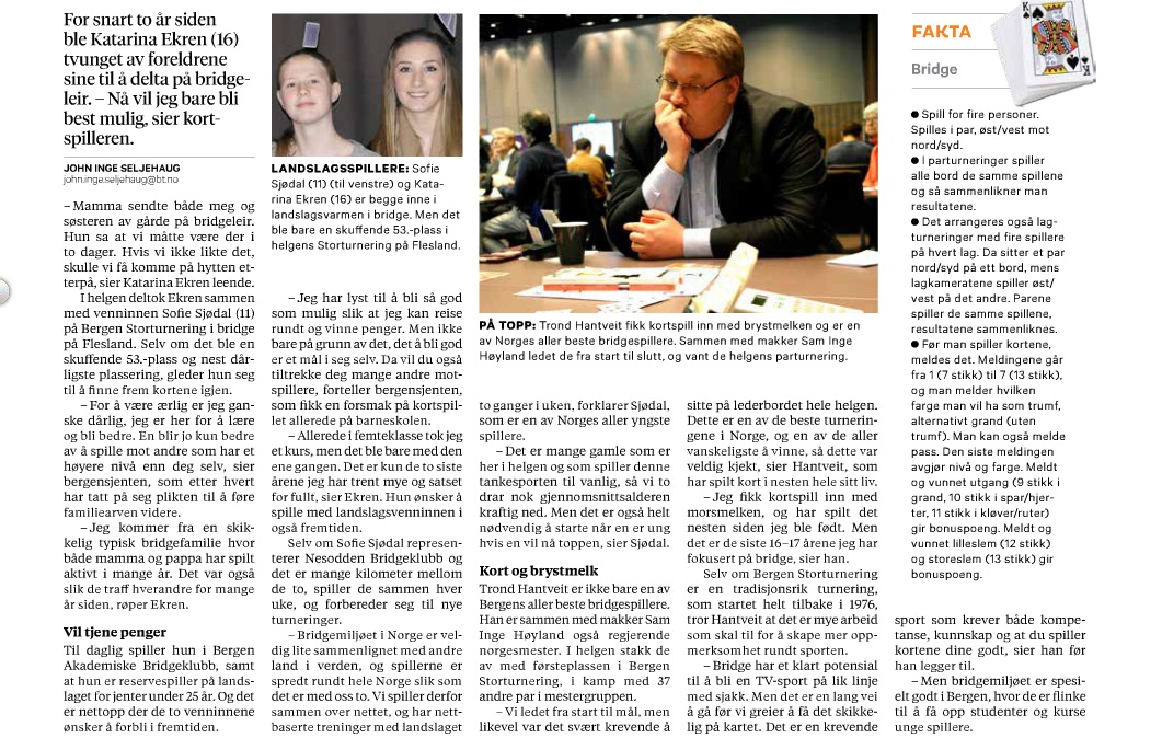 De fleste kom i 4hj i nord, men minst en spilte kontrakten fra syd og fikk kløver ut fra vest rett opp i ED. Det forsvant to ruter og elleve var sikret.