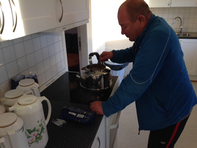Øst hadde et vanskelig utspill og startet med hjerteress. Så skifta han til kløver, men spillefører gikk opp på esset og tok syv ganger ruter. Før den siste er posisjonen som oppe til høyre. Øst kan ikke kaste majorkort, så da må kløveren gå. I bordet forsvinner hjerter ti og så spar fra hånda. Pent!!!