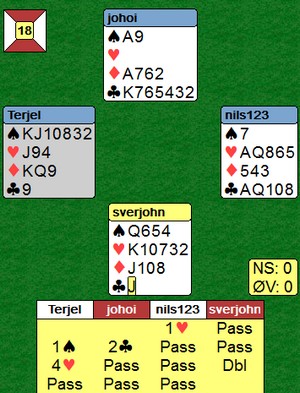 HJERTER 4 Klubbmesterskap over åtte kvelder. Tredje kveld 19. Januar 2015 1 Arthur Jensen Magne Birkelund 61,5 % 2 Sølvi Ingvaldsen Rita Losnedal 56,3 % 3 Elsa H. Hansen Snorre Omreit 55,9 % 4 Tone Mikalsen Thorbj. Benjaminsen 55,6 % 5 Ellen Blakstad Lars Kristiansen 53,0 % 6 Astrid Brunes Bodil Skogøy 50,0 % 7 Halvard Halvorsen Andres Guttormsen 48,9 % 8 Kjell Wiik Arnljot Leinan 48,5 % 9 Kåre Johansen Knuth Leithe 45,9 % 10 Astrid Nordahl Randulf Kristiansen 44,4 % 11 Gro Karlsen May Hognes 40,4 % 12 Steinar Abelsen Helge Moldjord 39,6 % Frirunde / singel 0,0 % 600,0 % Sammenlagt: 1 Andres Guttormsen Halvard Halvorsen 168,0 % 2 Ellen Blakstad Lars Kristiansen 166,4 % 3 Magne Birkelund Arthur Jensen 161,1 % 4 Sten Ivar Lekang Håvard Larsen 157,5 % 5 Elsa H. Hansen Snorre Omreit 157,2 % 6 Siw Elisabeth Helden Olav Westvig 150,8 % 7 Halvor Larsen Thorbj. Benjaminsen 150,6 % 8 Helge Moldjord Steinar Abelsen 147,9 % 9 Arnljot Leinan Kjell Wiik 143,5 % 10 Rita Losnedal Sølvi Ingvaldsen 143,4 % 11 Astrid Nordahl Randulf Kristiansen 141,5 % 12 Bodil Skogøy Astrid Brunes 141,2 % 13 Knuth Leithe Kåre Johansen 133,8 % 14 May Hognes Gro Karlsen 117,0 %