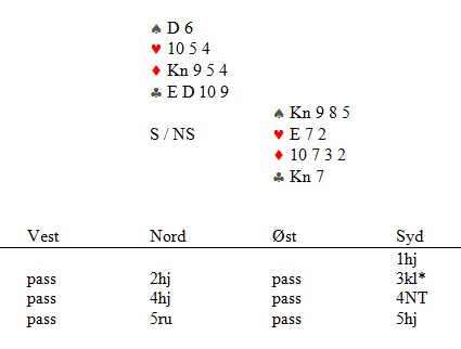 Dette spillet dukket opp i dagens klubbmesterskap. Poenget er at vi ofte legger styrke når vi har noe fint i den aktuelle fargen og svakhet når vi ikke har. Noen ganger skal vi etter min mening tenke litt lenger eller hva mener du?