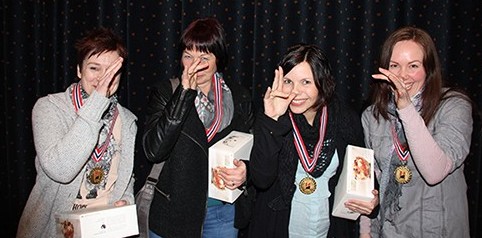 Jeg var ikke helt heldig med mine tips i fjorårets NM og på seierspallen sendte Tonje, Tone, Gunn Tove og Stime denne "hilsnen" til meg.