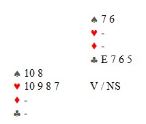 Nei, selvsagt gjør du ikke det i posisjonen til venstre. Hvis du gjør det, kan du ta for spar 10, men så må du spille hjerter til  dobbelrenons og kløvertaperen forsvinner.
