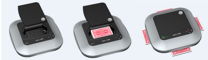 Kortene kommer ut gjennom de fire sidene av Dealer. Samidig som et spill spilles, klargjøres det neste. To kortstokker er alt som trengs pr. bord.