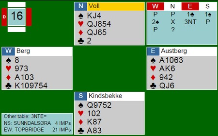 Vi kunne gjerne tenkt oss mer initiativ både fra NBF og kapteinen ift satsing og oppfølging mot nordisk. Vi gjør så godt vi kan på egen hånd, men det er alltid greit med feedback fra andre. Det er visse begrensninger ift økonomi, men det trenger ikke koste all verden. De felles landslagssamlingene på BBO som Tormod har organisert med påfølgende videokonferanse, har vært veldig nyttige. Det er artig å kunne sammenligne egne vurderinger og teknikk opp mot hva de andre landslagsspillerne gjør og tenker. Men det dreier seg bare om rundt 40 spill i de siste ukene før Nordisk. Vi trenger kvantitet i tillegg til kvalitet. Vi må spille mer, og mot god motstand. Vi håper på mer av denne typen trening i fremtiden.
