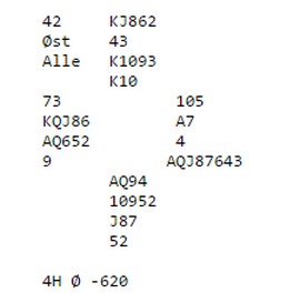 Det er ikke all verdens av norske flagg på resultatlistene, men vi må da for all del håpe på minst ett lag i sluttspillet. Det er flere norske spillere bak de grønne flaggene (GILLIS med Kvangraven, Lie og Odin Svendsen, NORALIA med Sveindal - Rasmussen, ERICHSEN med Espen Erichsen, Erlend Skjetne, Erik Berg og Steffen Fredrik Simonsen). Omtrent 120 VP vil holde til sluttspillsplass og det er viktig å ikke tape (stort) i de to siste rundene.
