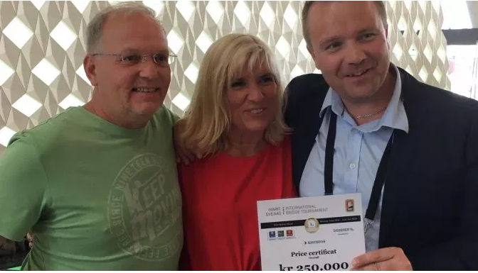 Det ble norsk dobbeltseier i Marit Sveaas Internasjonale bridgeturnering da Nils Kåre Kvangraven og Terje Lie vant med liten margin til Boye Brogeland og Espen Lindqvist. Det var god margin ned til tredjeplassen som ble besatt av franske Grosset-Combescure.