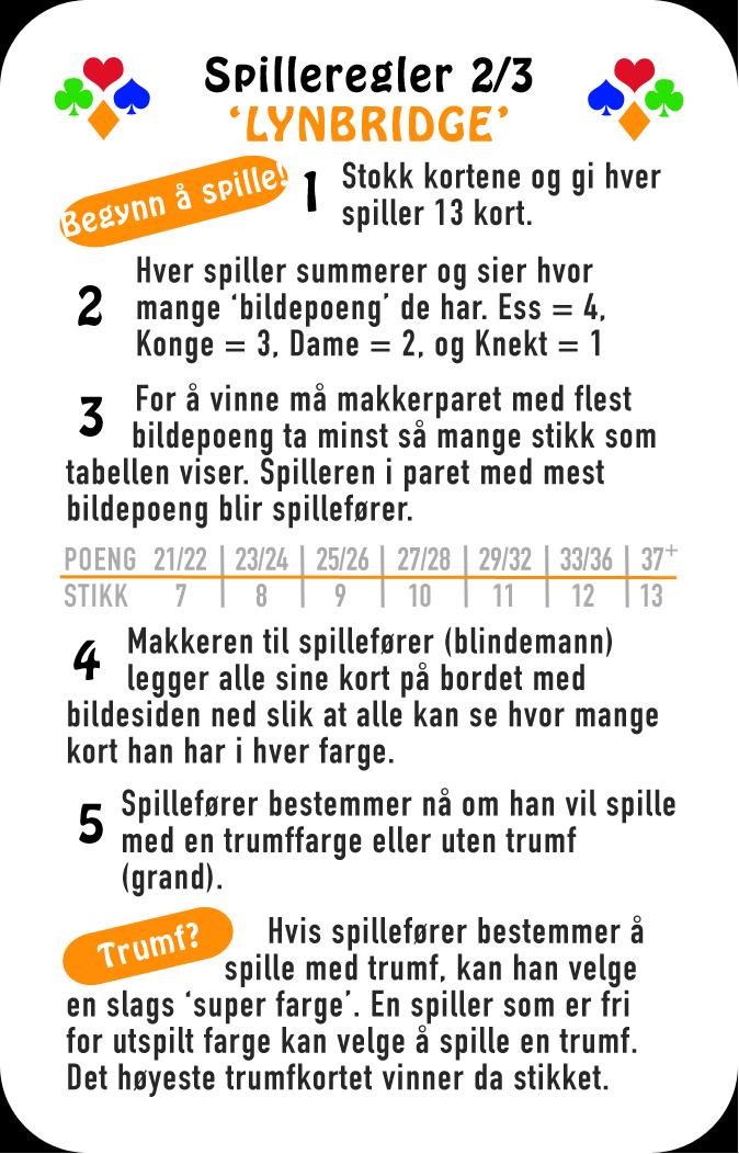 Lynbridge fokuserer på spillet, så meldedelen er svært forenklet. Etter at det forenklete meldingsforløpet er over, er spillet helt likt vanlig bridge.