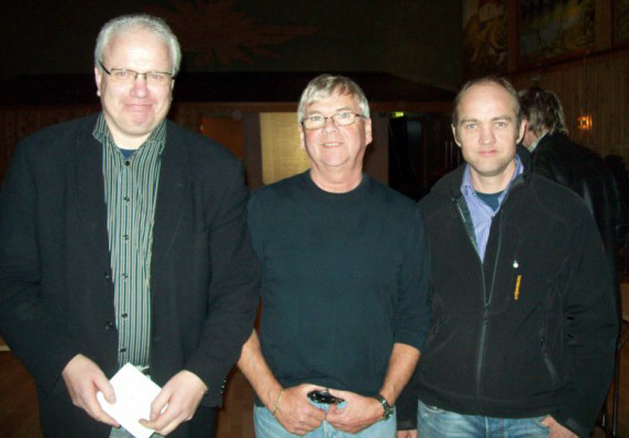 Vinnerene tv. Øystein Vasset og th. Geir Hjelmeland sammen med klubbens leder Terje Sæbø.