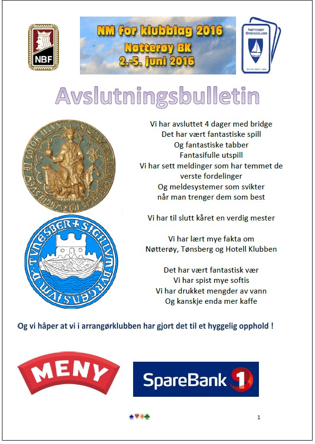 Fortvil ikke hvis det skulle vise seg å sitte igjen "færre"enn dere kunne tenke dere, en spire er født og kanskje er det akkurat dette som skal til for at ungdommen skal ta opp et bridgekurs i voksen alder.
